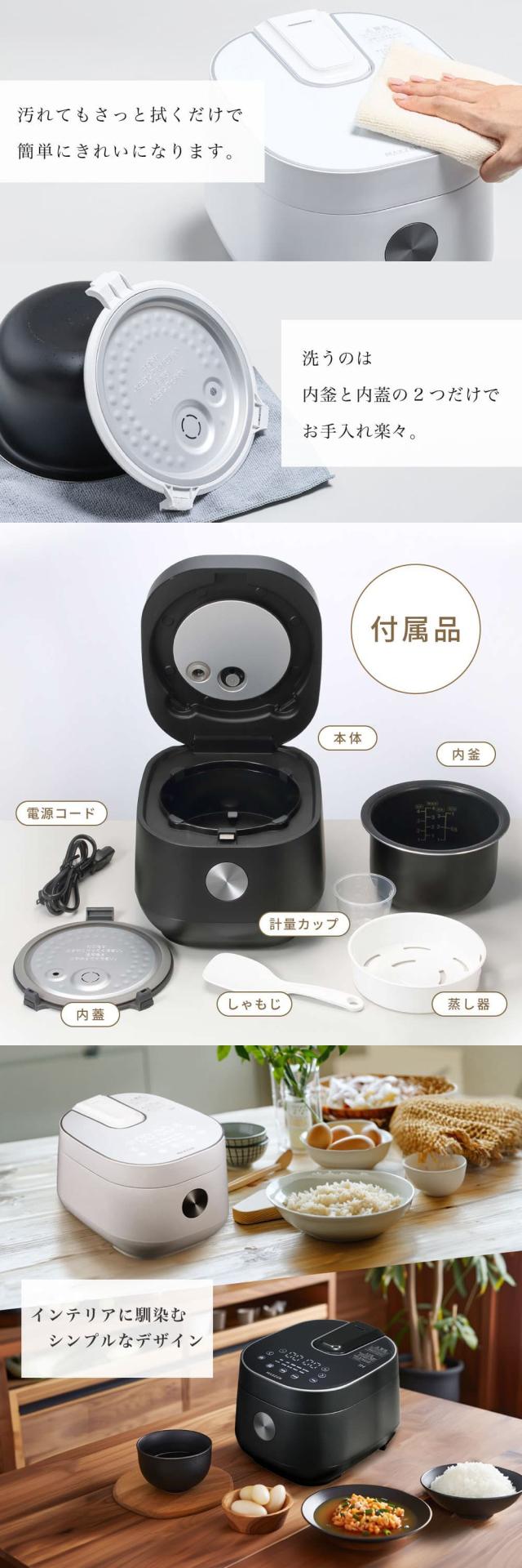 * 付属品:取扱説明書、計量カップ、しゃもじ、電源コード、蒸し器