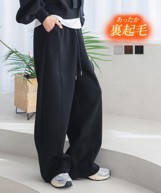 裏ファーボンディングダイバーバレルレッグカーブパンツ M4155 入荷済 レディース 20代 30代 40代 カーブパンツ バレルレッグ エッグパンツ コクーン ダイバー 裏起毛 裏ファー 暖か あたたかい 低身長 プチ ダンボール スウェット セット