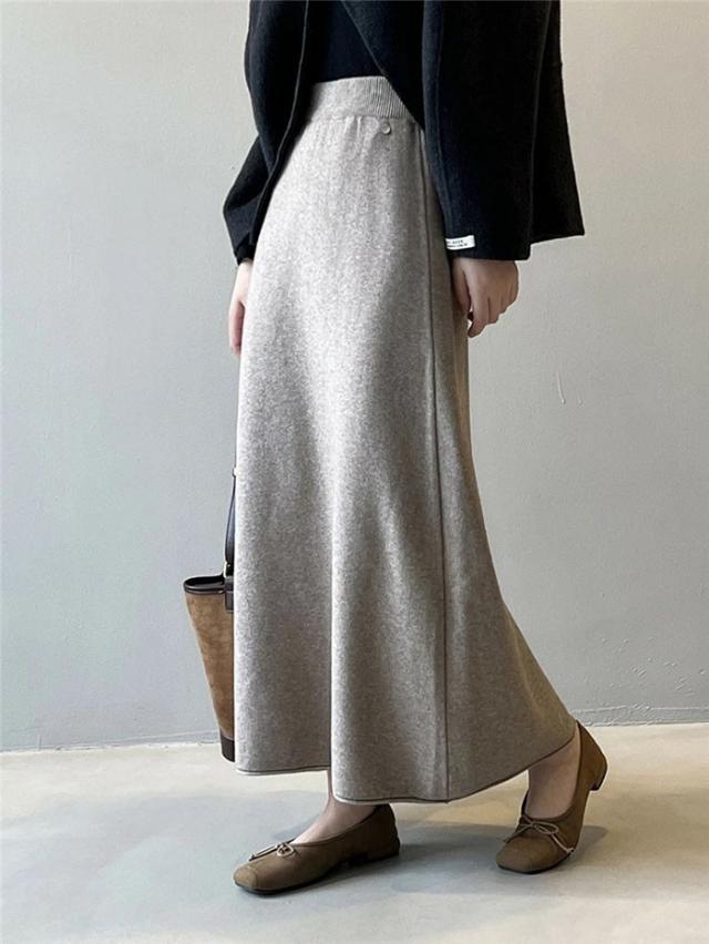 スカート ニットスカート レディース 秋 冬 ボトムス ロング丈 ハイウエスト aライン aラインスカート 無地 シンプル おしゃれ きれいめ エレガント 通勤 オフィス コーデ 膝下 レディーススカート 女子 女性 20代 30代 40代 de054n1n1x7xq de054n1