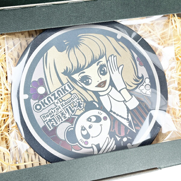 独特な感性と多彩な才能で今や世界中に広がる日本独自の「Kawaii」文化の原型を作ったアーティスト内藤ルネ。ルネガールと日本初のパンダキャラクターのルネパンダ、背景にはサンフラワーがデザインされています。ヤスオカのレーザー技術を使い着色ではない発色によって愛知県岡崎市で見ることのできるカラフルなマンホールをミニチュアマンホールで再現しました。ぜひ手にとってルネの「Kawaii」世界観をお楽しみください。7色展開の「ピンク」です。