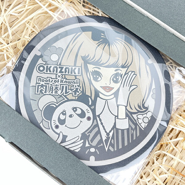 独特な感性と多彩な才能で今や世界中に広がる日本独自の「Kawaii」文化の原型を作ったアーティスト内藤ルネ。ルネガールと日本初のパンダキャラクターのルネパンダ、背景にはサンフラワーがデザインされています。ヤスオカのレーザー技術を使い着色ではない発色によって愛知県岡崎市で見ることのできるカラフルなマンホールをミニチュアマンホールで再現しました。ぜひ手にとってルネの「Kawaii」世界観をお楽しみください。7色展開の「グレー」です。
