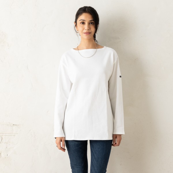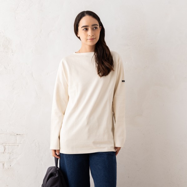 ST.JAMES(セントジェームス)のTシャツが入荷しました☆肉厚でやわらかい素材を使用した長袖カットソー。すっきりとしたボートネックタイプで、デコルテを美しく見せてくれます。袖にあしらったロゴでアクセントをプラス。単体ではもちろん、ジャケットやパーカーのインナーとしても活躍します。