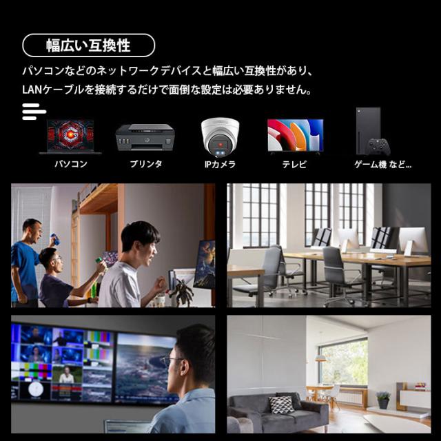 パソコンなどのネットワークデバイスと幅広い互換性があり、LANケーブルを接続するだけで面倒な設定は必要ありません。