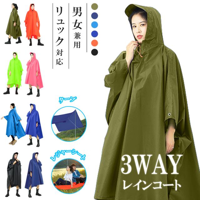【3WAY使用】レインコート 自転車 レディース メンズ 収納袋付き レインポンチョ ロング丈 レインウェア リュック対応 タープ レジャーシート ポンチョ コート ランドセル対応 撥水 通勤 通学 登山 バイク 雨よけ 雨具 梅雨 雪 台風 防災 おしゃれ アウトドア 軽量 送料無料