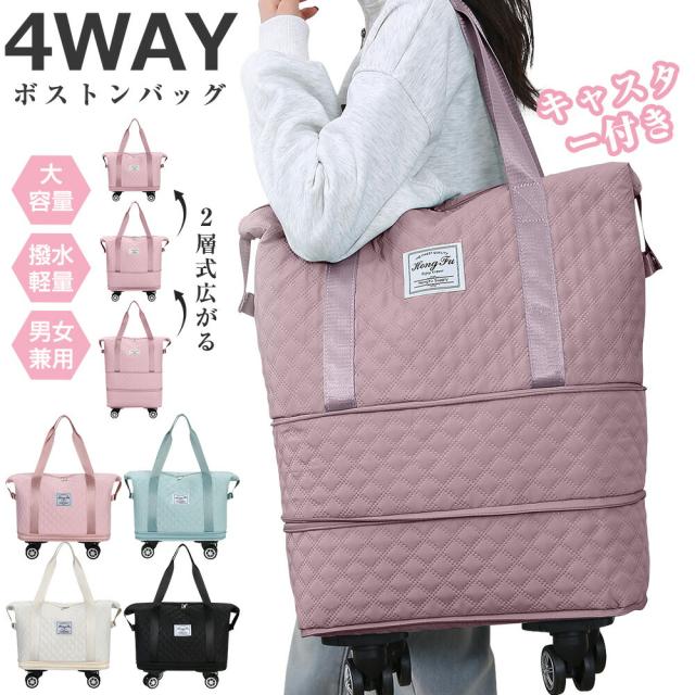 【4輪キャスター付き】ボストンバッグ レディース メンズ 4WAY 2層拡張できる 旅行バッグ 大容量 旅行カバン キャリーオンバッグ 折り畳み トラベルバッグ 修学旅行 軽量 キャリーバッグ リュック 乾湿分離 機内持ち込み 撥水 4-5泊 学生 スポーツ 出産 部活 合宿 送料無料