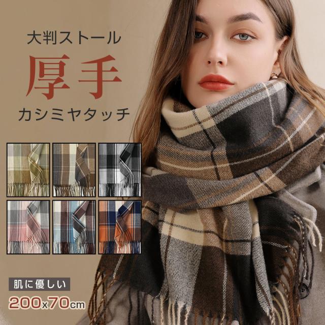 ストール 大判 厚手 チェック 200x70cm マフラー レディース メンズ カシミヤタッチ スカーフ ネックウォーマー 肩 ひざ掛け 無地 秋冬 ウールタッチ 羽織 防寒 着物 柔らかくしっとり肌なじみ 小顔効果 オシャレ 可愛い 結婚式 学生 誕生日 花見 新年 ギフト 送料無料