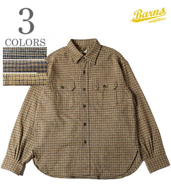BARNS バーンズ シャトルノーツ 長袖|ツイードコットン|フランネル|ワークシャツ『40s Worker Flannel Shirt』【アメカジ・ワーク】BR-24449