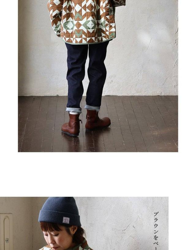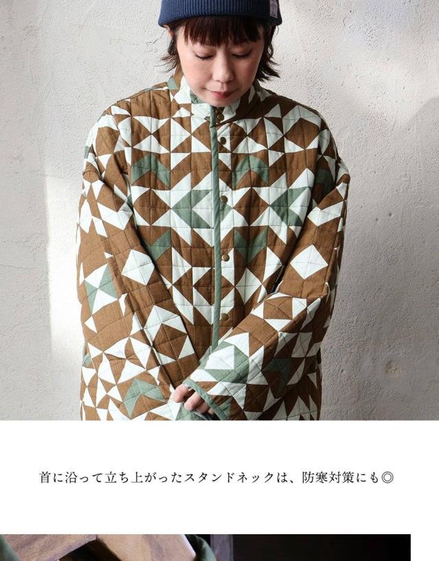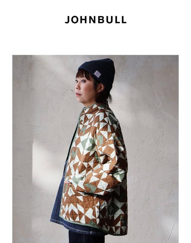 Johnbull ジョンブル ジャケット キルトジャケット レディース 幾何学柄 配色 手作業 綿100 コットン 薄中綿 暖かい 軽い すっきり 大きいサイズ 体型カバー カジュアル ミリタリー 秋 冬 パティ