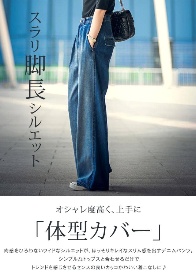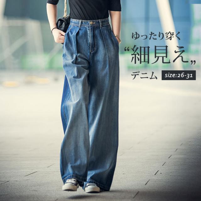 ワイドパンツ デニム パンツ レディース デニムパンツ 脚を長く見せる ジーンズ ボトムス デニム ジーンズ ガウチョパンツ 体型カバー 秋 ロングパンツ 小さいサイズ 大きいサイズ 着痩せ 美脚 脚長 ゆったり