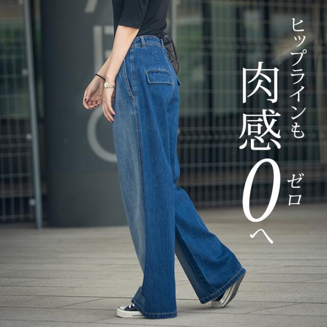 ◇ゆったりしたワイドなシルエットで着心地が楽々なデニム。 ◇綺麗な脚長シルエットでオシャレ度の高いパンツです。
