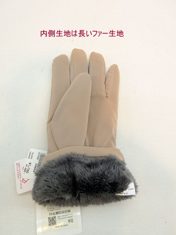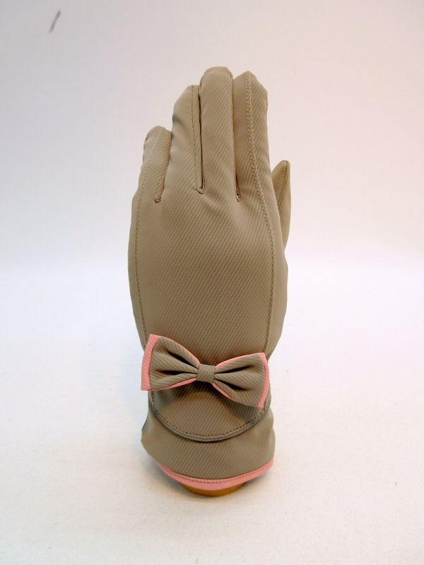 | 手首のフェミニンなリボンがポイントのショート手袋。女性らしいデザインで、内側は毛足の長い生地で手を暖かく包み込みます。 手の平全体がタッチパネル仕様。 |