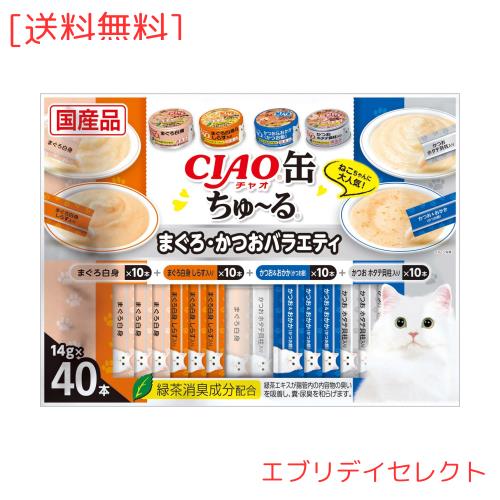 ◆商品名:チャオ (CIAO) 缶ちゅ~る まぐろ・かつおバラエティ 40本
