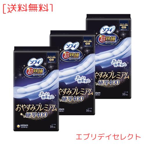 ソフィ 超熟睡 おやすみプレミアム 極厚400 特に多い夜用 羽つき 40cm 10コ入×3個パック(30コ入)(生理用品 ナプキン)