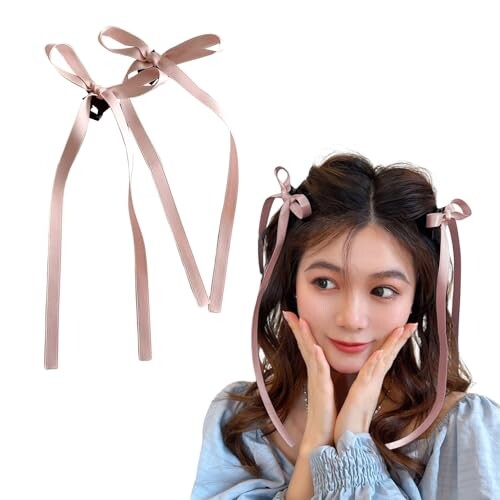 バタフライクリップ リボン髪飾り リボン結び 韓国系スタイル フランス風 甘い 雰囲気 誕生日 発表会 花火大会 成人式 入学式 (2個セット) (ピンク)