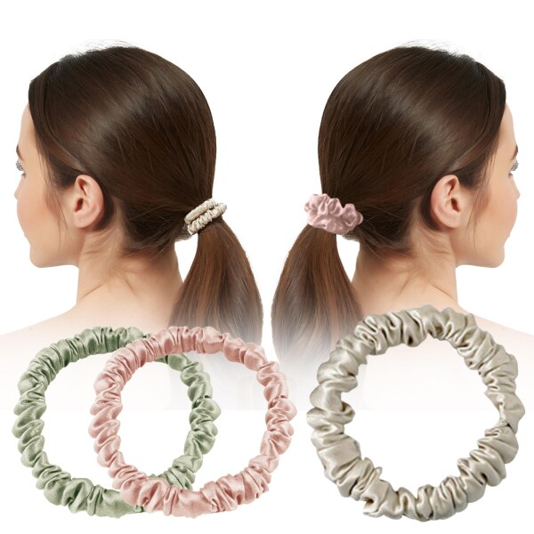 シルク ヘアゴム 太さ1cm×2本、1.5cm×1本 3本 セットシュシュ 髪ゴム 髪留め 髪飾り ヘア アクセサリー プレゼント (?セット シャンパンベージュ(1.5cm) / シャンパンピンク、ピスタチオ