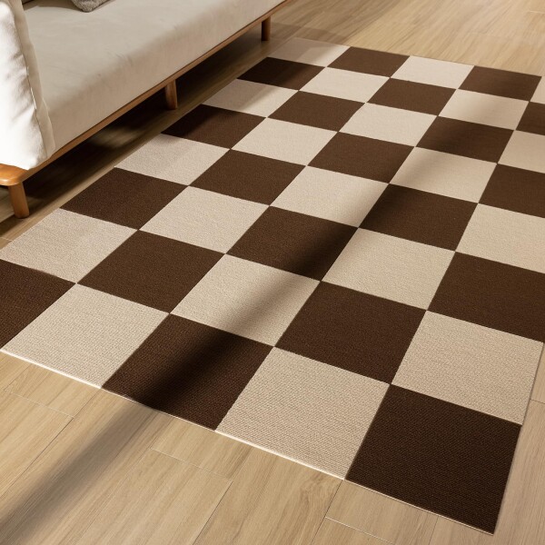 タイルカーペット タイルマット ジョイントマット すべりとめ 吸着カーペット ラグマット 犬 猫 保温 取り付け簡単 ズレない 滑り止め 防音 手洗い/洗濯機対応 (ブラウン*ベージュ) YOXU