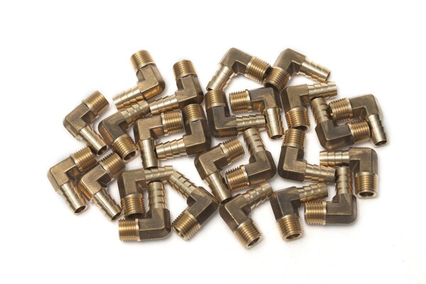 【商品の情報】 全部25個入:26g/個 サイズ:R(PT)1/4;ホース接続部直径10mm 90°エルボー継手 材質:黄銅 優れた耐久性:高品質の真鍮製で、耐腐食性と耐久性に優れ、長期間使用しても錆びにくい。 多用途:家庭用および工業用の様々なホース接続に適しており、水や空気などの流体に適用。