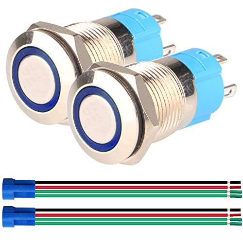 Gebildet 2個 12mm 12V-24V3A LEDステンレス鋼モーメンタリー押しボタンノーマルオープンSPSTオンオフ防水ワイヤーソケットプラグ(青色LED)