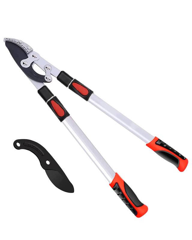直径50mmの枝の剪定えだきりばさみ 強力は、直径50mmまでの生枝を簡単に切ることができるので、ノコギリを使うよりも効率的です。高い枝を簡単に切ることができます。