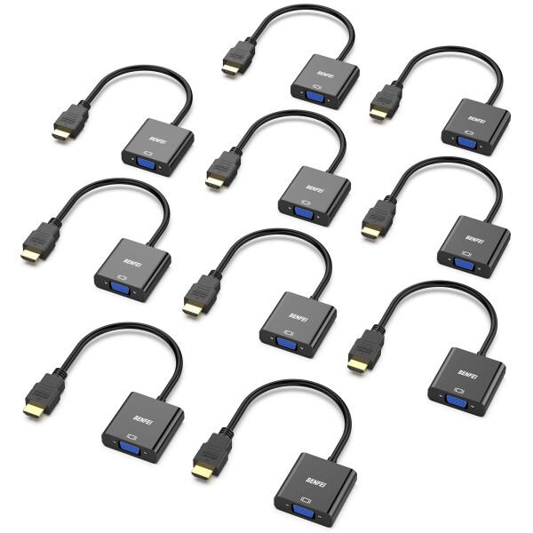 BENFEI 10個 HDMI-VGA(D-SUB)アダプター (オスからメス、逆方向に非対応) 1080pフルHD HDMI to VGAアダプタ コンピューター、デスクトップ、ノートパソコン、PC、モニター、プロジェクター、HDTV、Chr