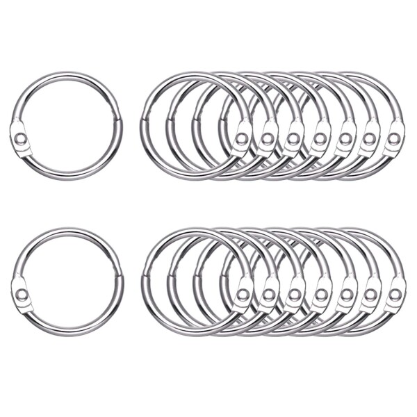 Antner 100ピース ルーズリーフバインダーリング、1インチ径、ニッケルメッキ金属製オフィスブックリング キーホルダー