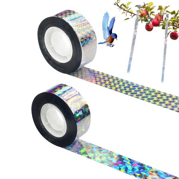 ZHEJIA 防鳥ホログラムテープ 鳥よけ テープ (2個セット) 防鳥テープ キラキラテープ 両面高反射 鳥よけグッズ 害鳥駆除 キツツキ ハト 田畑 屋外 菜園 果樹 鳥対策 粘着面無し 幅2.4cm*長さ8