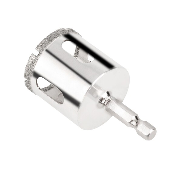 【ダイヤモンドホールソー(六角軸 6.35mm)】ダイヤモンド砥粒を電着したガラス。タイル用のホールソーです。細めの砥粒を採用、被削材が割れにくく、よく切れ、長持ち。