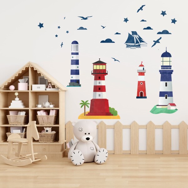 AnFigure 灯台ウォールステッカー リビングルーム ベッドルーム バスルーム ウォールステッカー テレビ 3D DIY 航海ヨット ビーチボート 沿岸カモメ 鳥 動物写真 ミラー 赤ちゃん 男の子 女