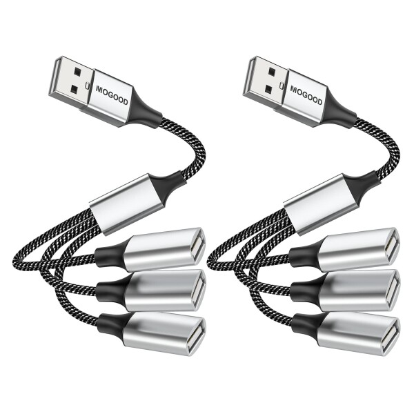 MOGOOD USB分岐器ケーブル 3-in-1USBスプリッタ USB電源分岐器 1オス3メスUSB 2.0アダプタ USB拡張ケーブル USBマルチポート充電/データ転(2パッケージ)