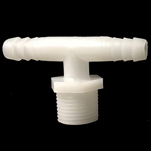 (5個セット)樹脂製チューブコネクター×継手T型(タケノコ先端外径12mm×ネジ寸法G1/2"、プラスチック製、型番T12-G1/2-12)