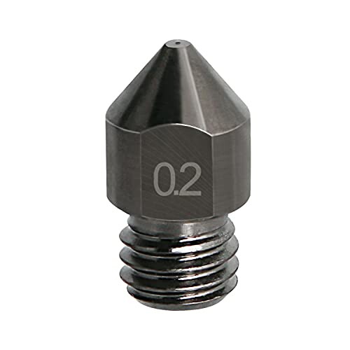 仕様:材質:超硬合金鋼、ノズルパラメータ:0.2mm / 0.008"、入力穴の直径:1.75mm / 0.069"、ネジ:M6、六角幅:6mm / 0.28"、長さ:13mm / 0.5".