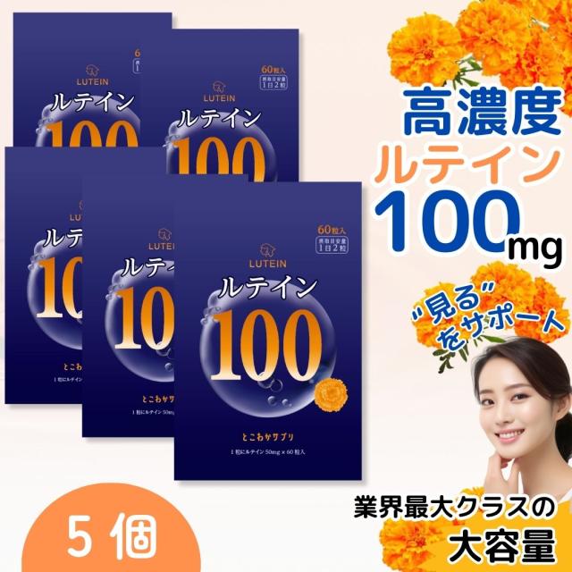 5個セット ルテイン100mg 高濃度 ゼアキサンチン5mg 1日2粒 60粒入 サプリメント 目 2粒で100mg 1粒で50mg とこわかサプリベーシックRDA フリー体ルテイン