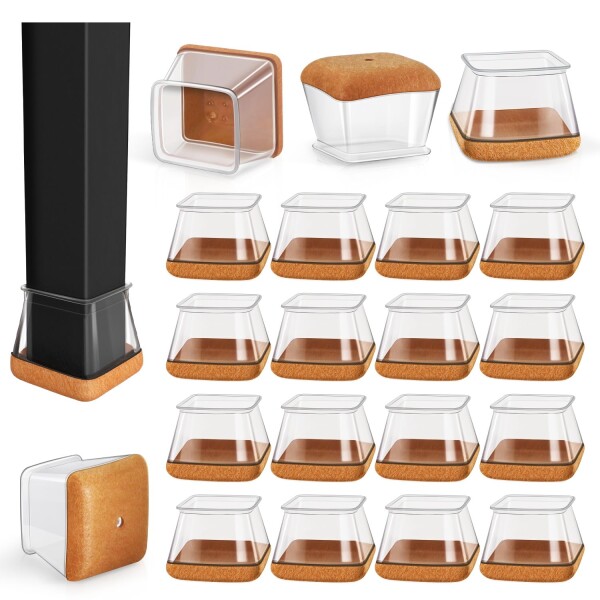 椅子脚カバー四角 椅子の脚カバー椅子脚カバーシリコン 家具足 傷防止 防音 傾斜した足適用 角脚用フェルト巻16個 透明 XL-43-50mm