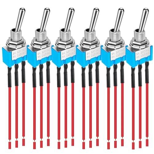 Kiligen 6 個パック 配線済み MTS-103 ブルー ミニ トグル スイッチ 125VAC 6A、3 ピン 3 ポジション ON/OFF/ON オン/オフ/オン スイッチ 自動車用 船舶用 トグルスイッチ