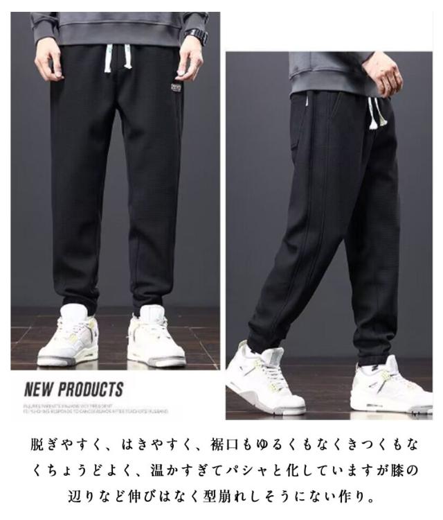 暖パン メンズ ジョガーパンツ 裏起毛 ストレッチ 男性 大人 スリム スウェットパンツ バイク 軽量 細身 暖かい スポーツ ワッフル生地 防寒着 アウトドア ゴルフ 暖パン 厚手 テーパード イージーパンツ 自転車 無地 20代 30代 40代 男性 秋 冬