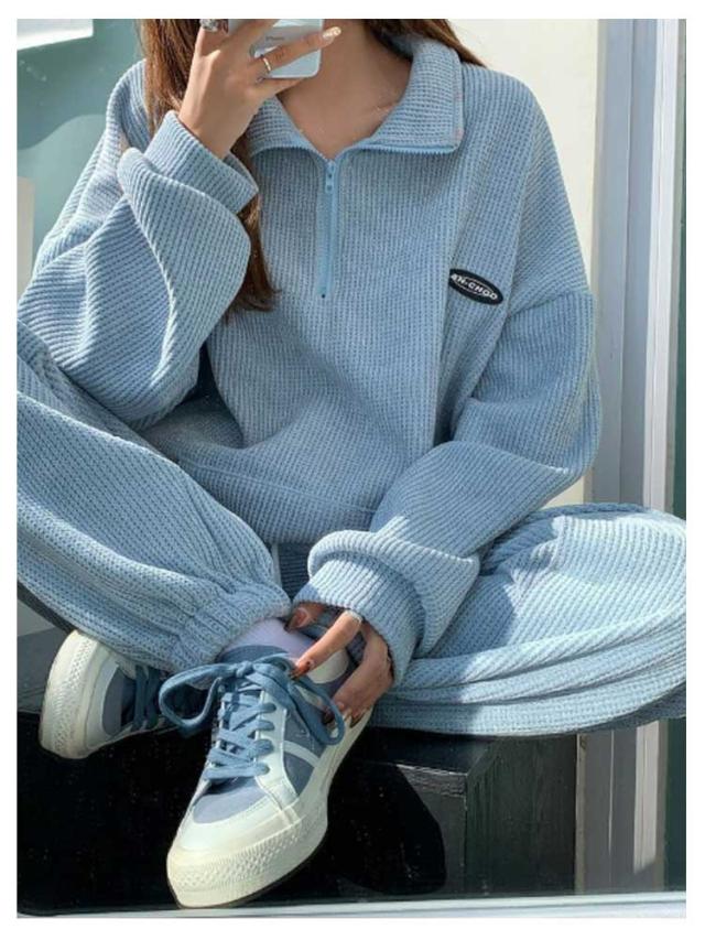 スウェット セットアップ ワッフル生地 レディース ダンス プルオーバー トップス レディース ジョガーパンツ 2点セット スポーツウェア ダンスウェア 上下セット ランニング ウォーキング ゆったり 裏起毛 春 秋