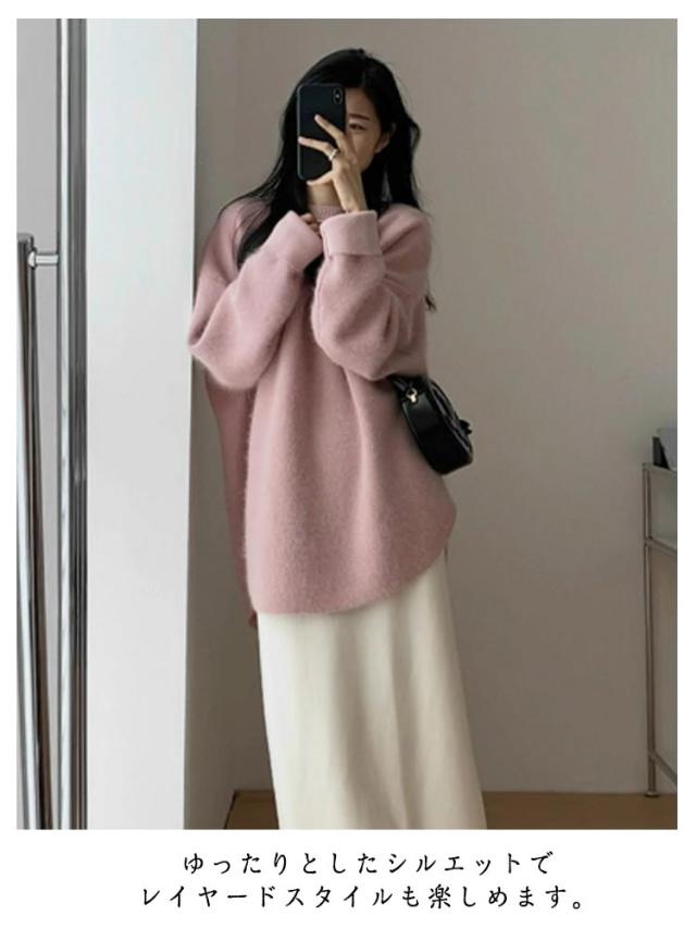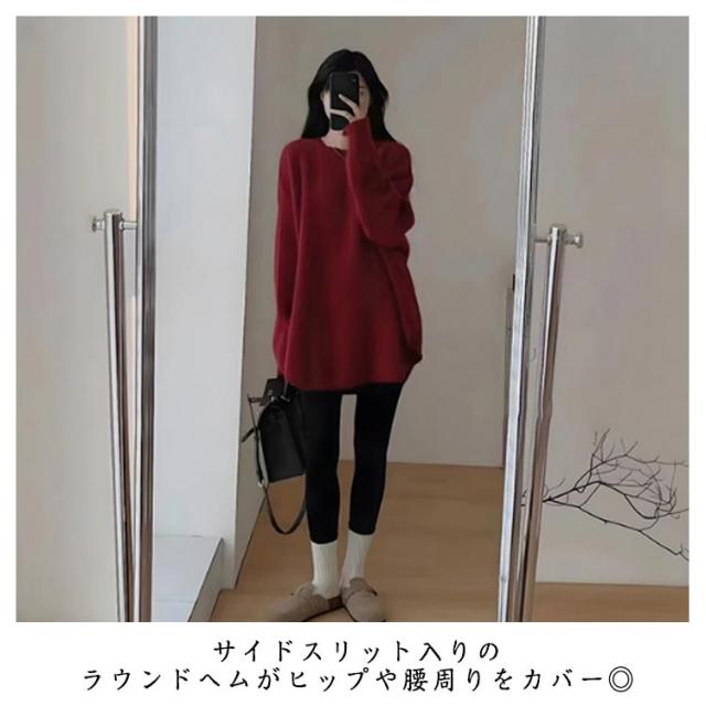 オーバーサイズ トップス チュニックニット レディース セーター 長袖 キレイめ プルオーバー 秋冬 オーバーサイズ ゆったり 体型カバー ニット レイヤード 20代 30代 40代