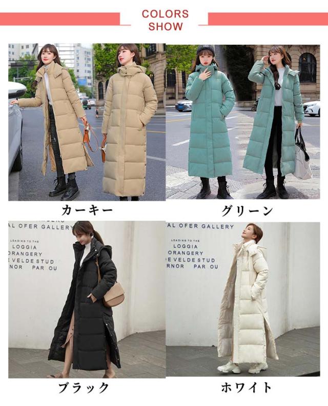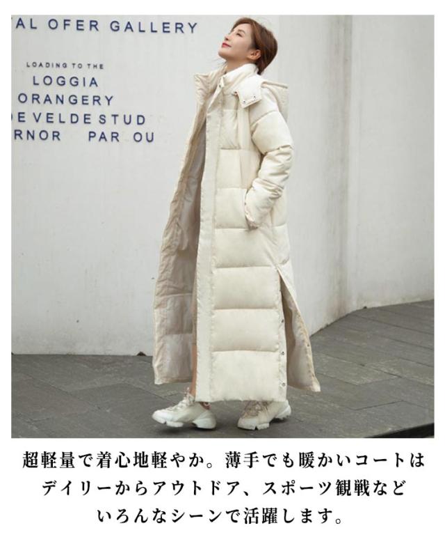 マキシ丈 中綿コート レディース 超ロング 中綿ジャケット フード スタンドカラー Iライン 着痩せ 体型カバー 大きいサイズ ロング 冬 秋 きれいめ コート アウター 防寒 防風 軽量 無地 シンプル おしゃれ カジュアル 送料無料