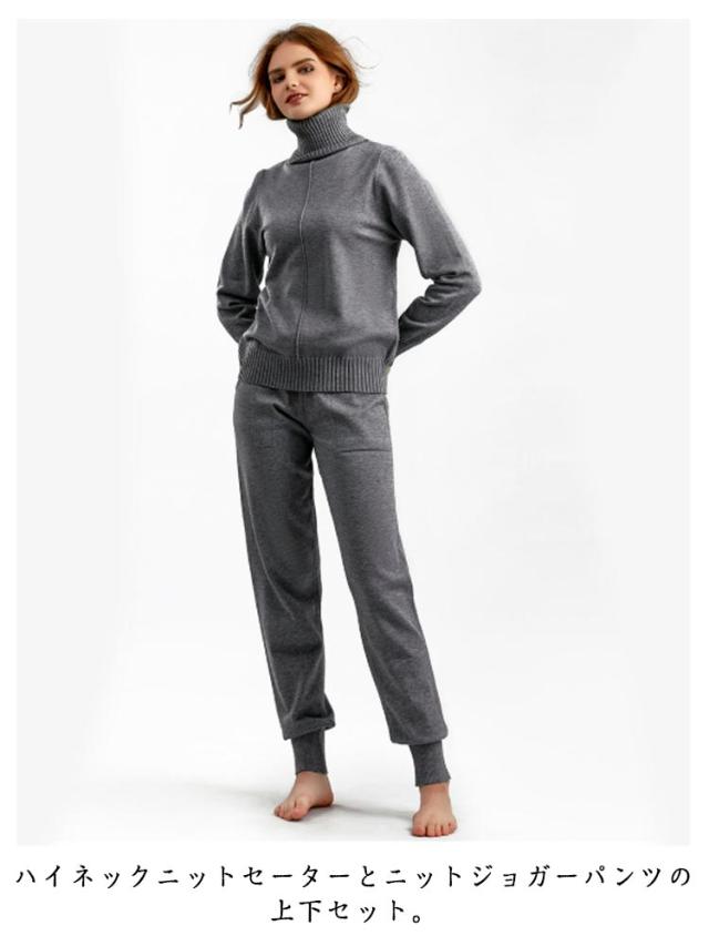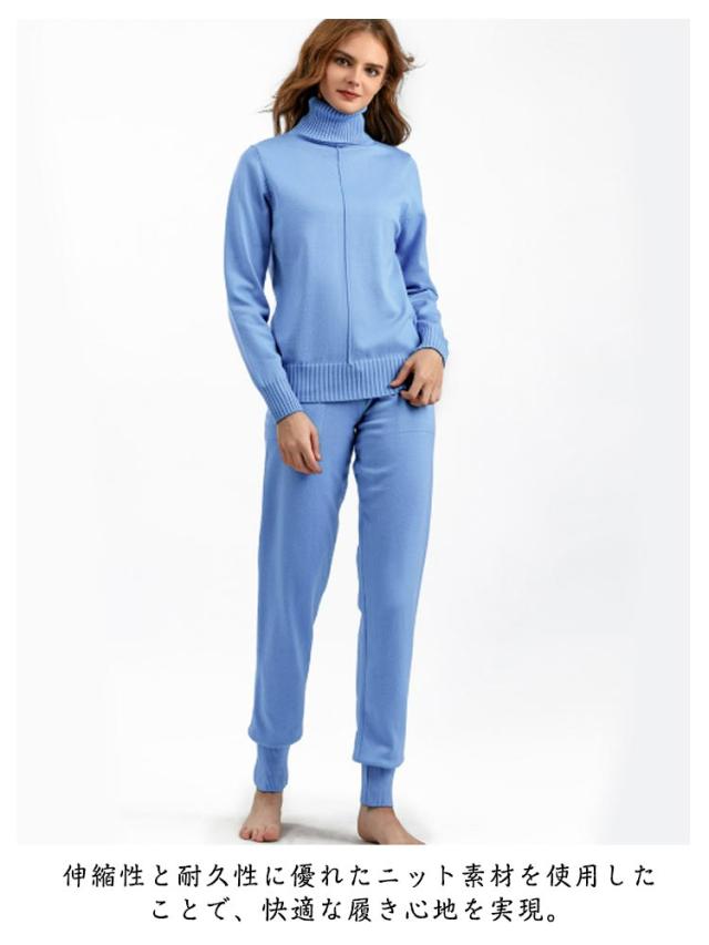 ジョガーパンツ ニット ゆったり レディース ニットアップ ニットパンツ セーター 長袖 セットアップ ハイネック 秋冬 部屋着 楽チン ニット 冬 30代 40代