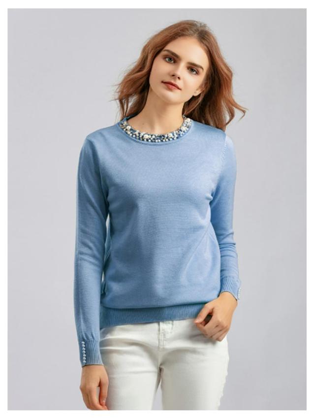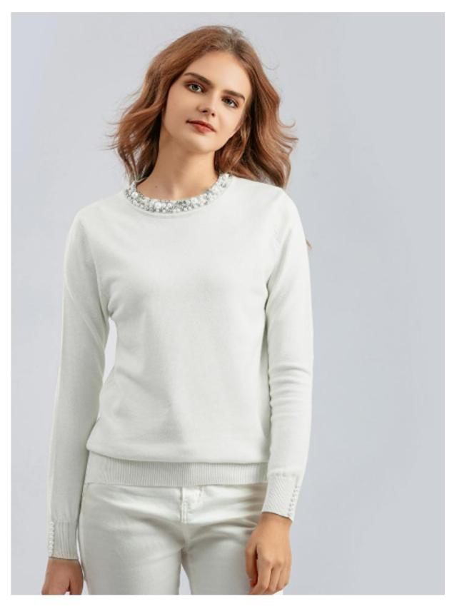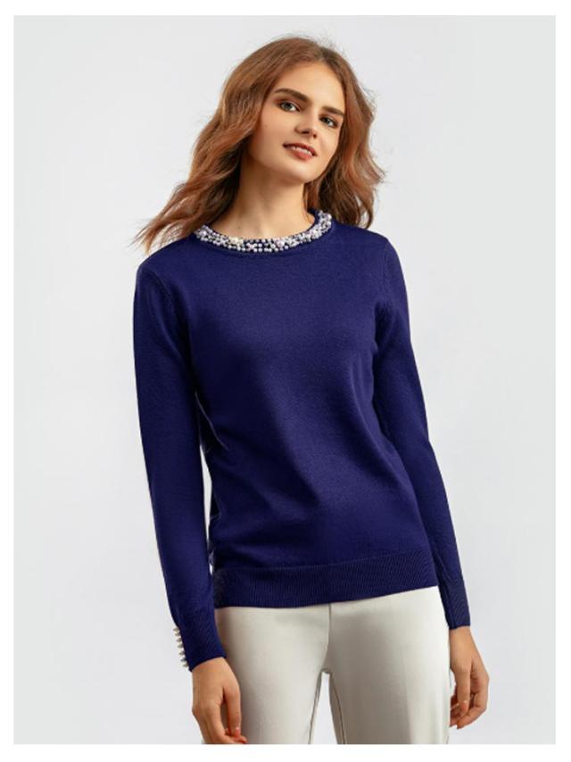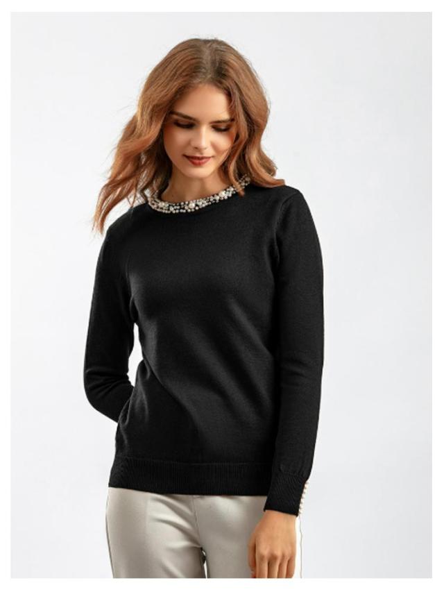 パール トップス ニットトップス レディース 長袖 パール パールニット プルオーバー ラウンドネック ニット パールネック パール付き 長袖ニット 秋 冬