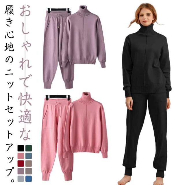 ジョガーパンツ 秋冬 ゆったり レディース ニットアップ ニット セットアップ 長袖 ニットパンツ セーター 秋 部屋着 楽チン ニット 冬 30代 40代