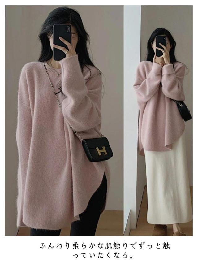 オーバーサイズ 秋冬 レディース セーター トップス ニットセーター ゆったり ニット 長袖 チュニックニット オーバーサイズ 体型カバー キレイめ レイヤード 20代 30代 40代