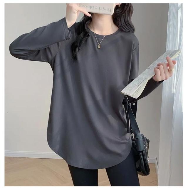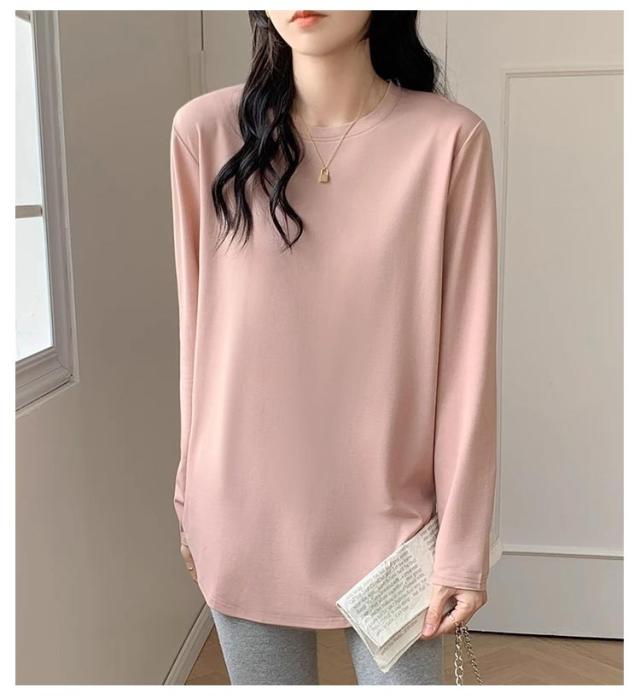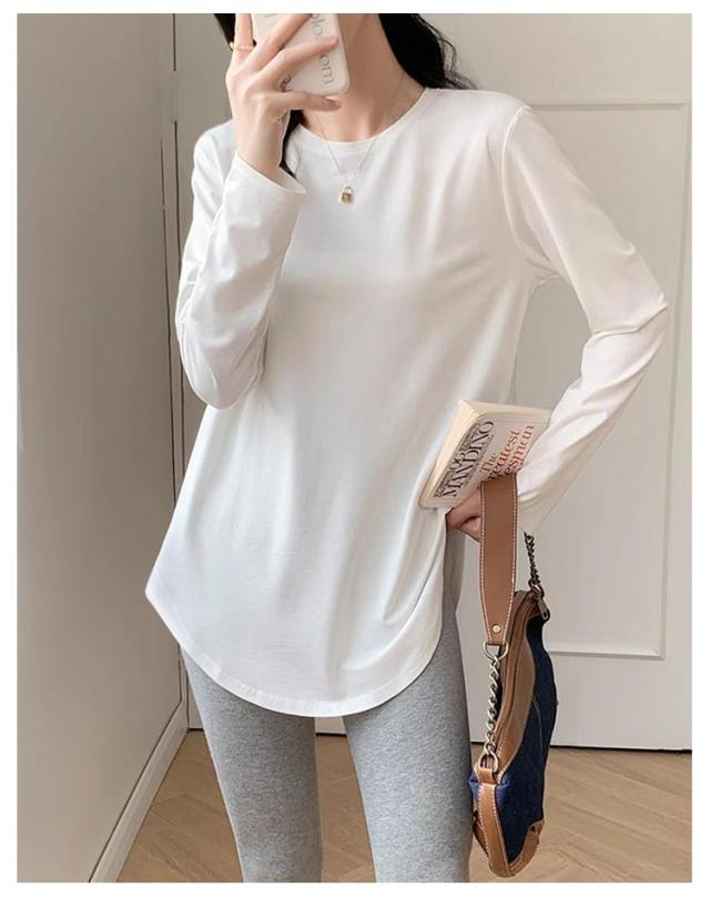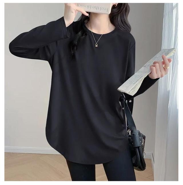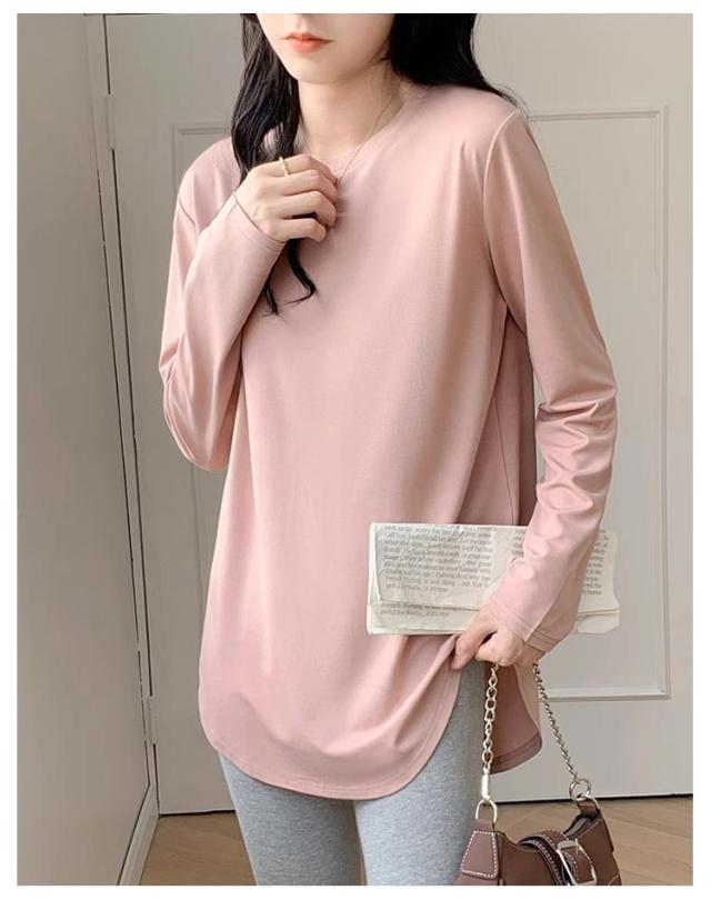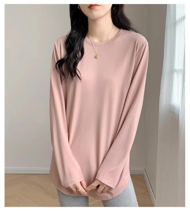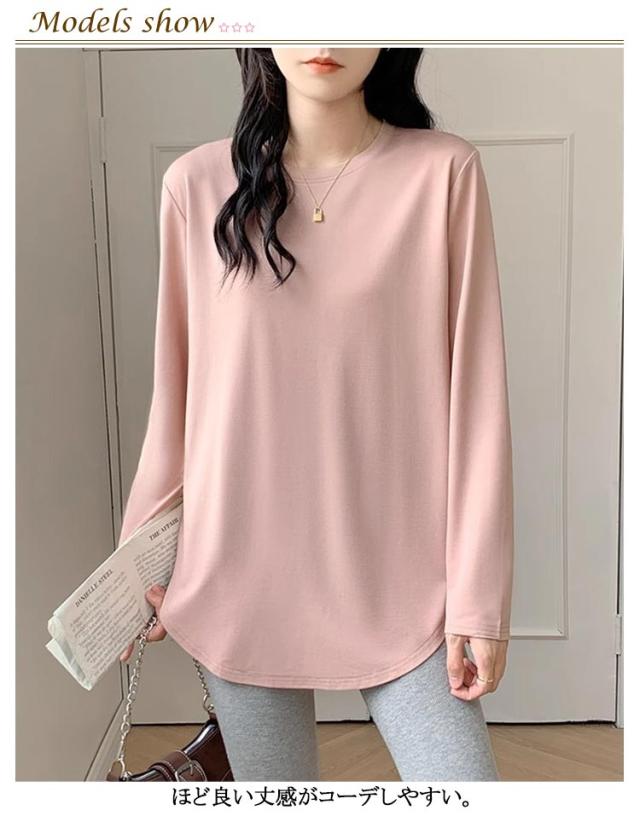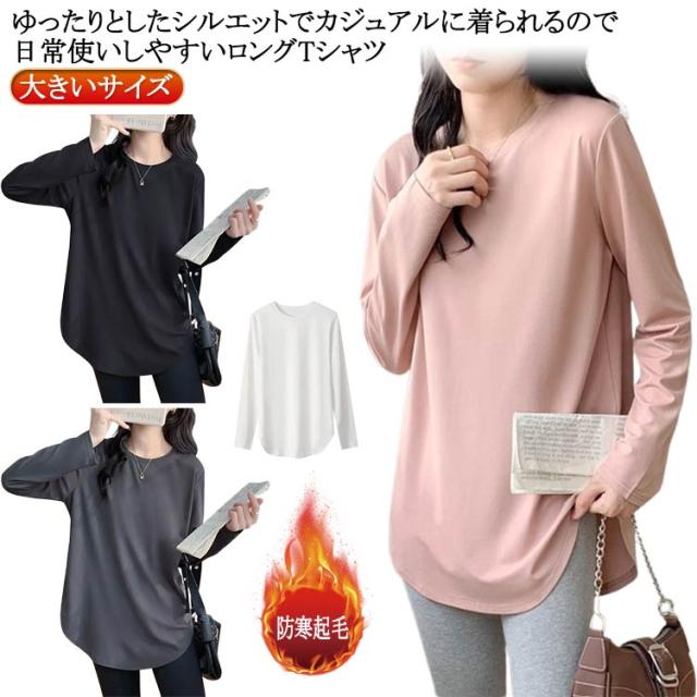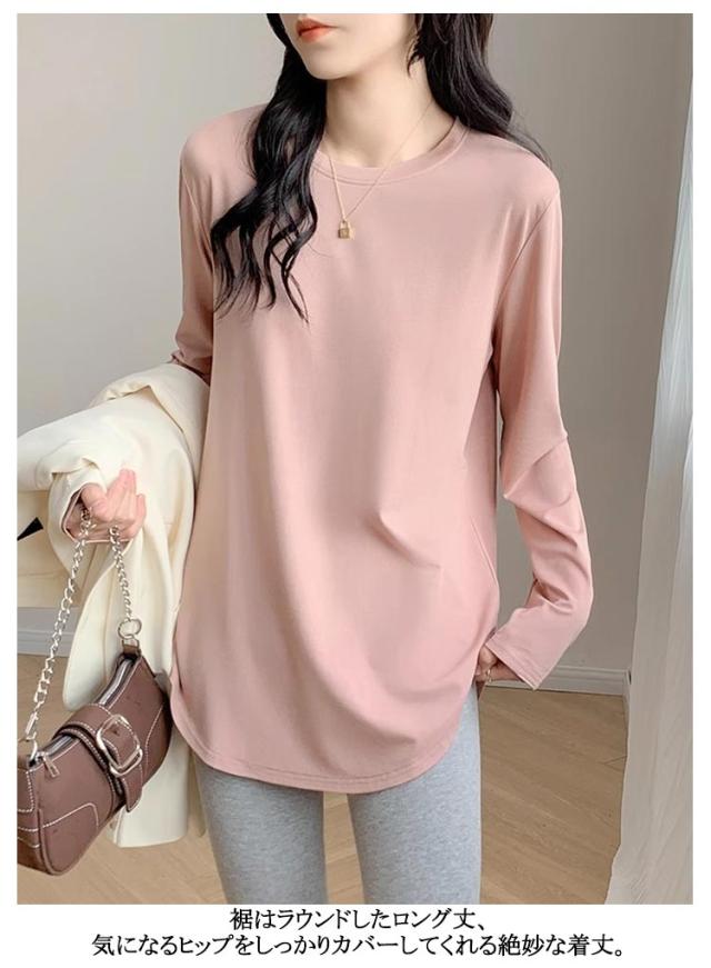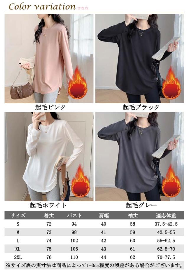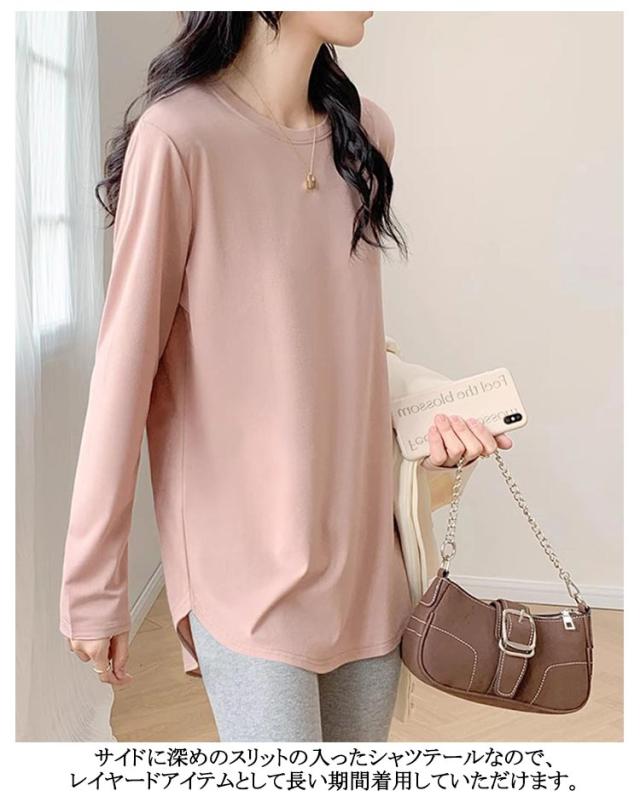 レディース 長袖 クルーネック tシャツ チュニック インナー 冬 白 プルオーバー Tシャツ 無地 tシャツ 丸首 春 カットソー ロンT 長袖tシャツ 起毛 サイドスリット レイヤード 重ね着 トップス 黒 ピンク カジュアル シンプル
