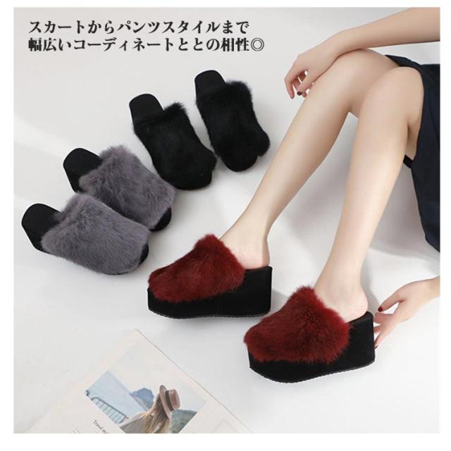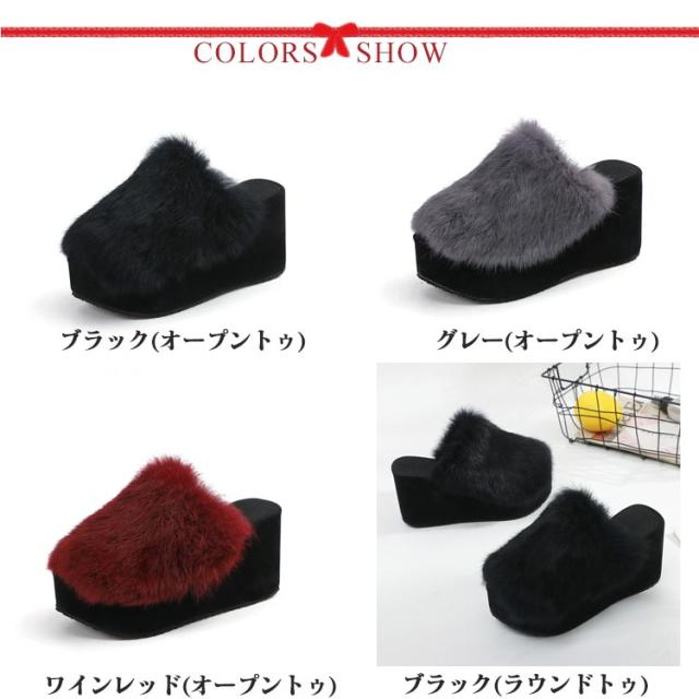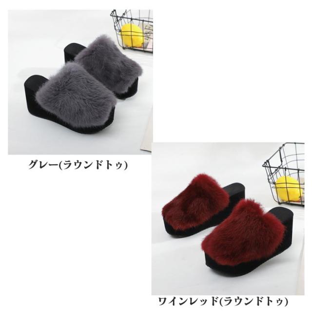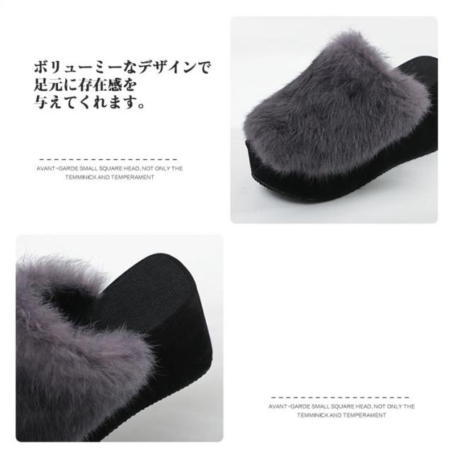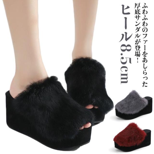 美脚 ファーサンダル ファーサンダル 厚底 サンダル オープントゥ フェイクファー ボアサンダル レディーズ おしゃれ ウェッジサンダル スリッパ ファー付き ミュール ヒール8.5cm 歩きやすい カジュアル お出かけ 秋
