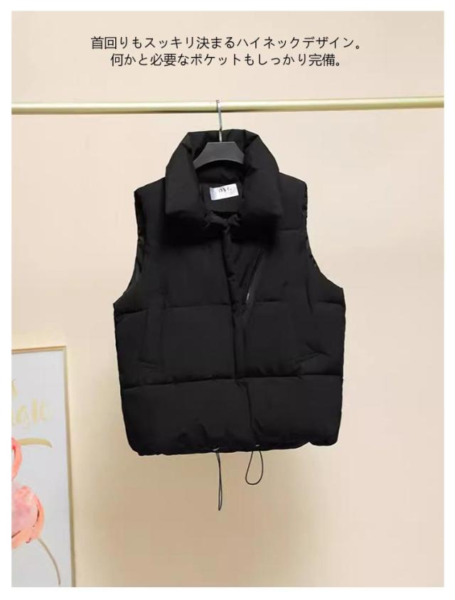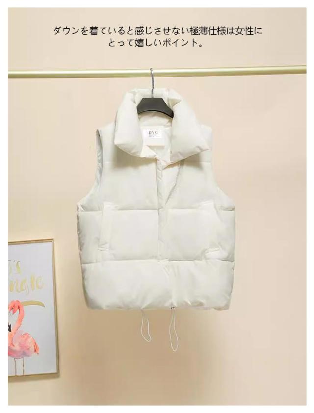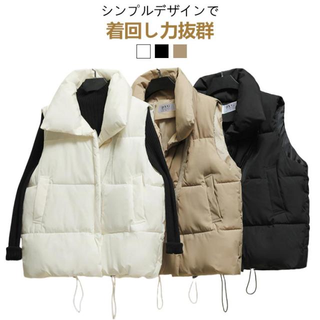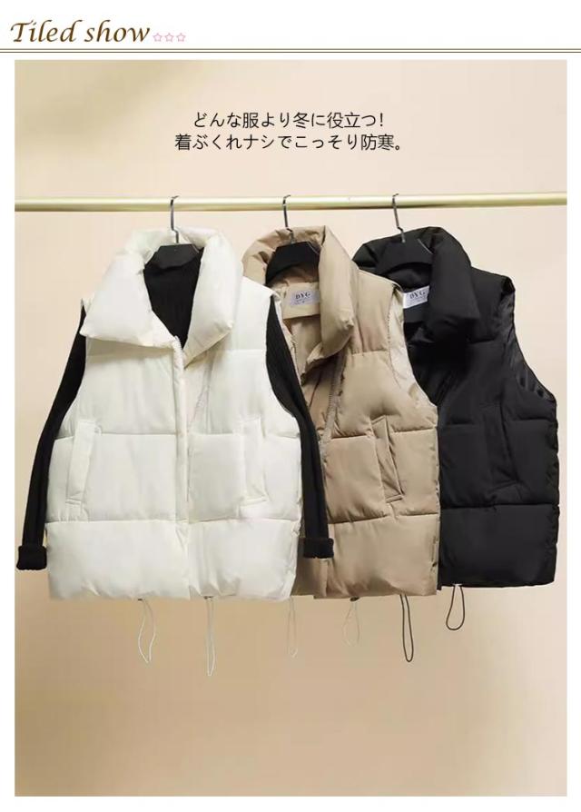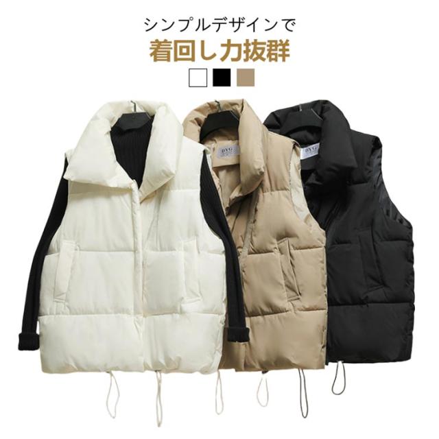キルティング ダウンベスト 中綿ベスト トップス 中綿 ポケット付き ライトアウター 前開き 秋冬 ジャケット 羽織り 厚手 防寒 量軽 ノースリーブ 通勤 ダウンベスト 通学 韓国風 ふわふわ
