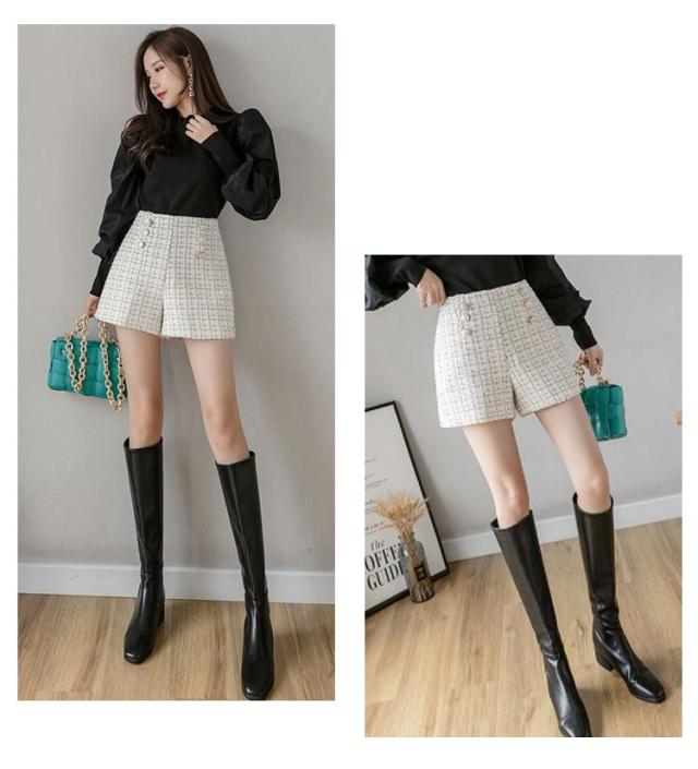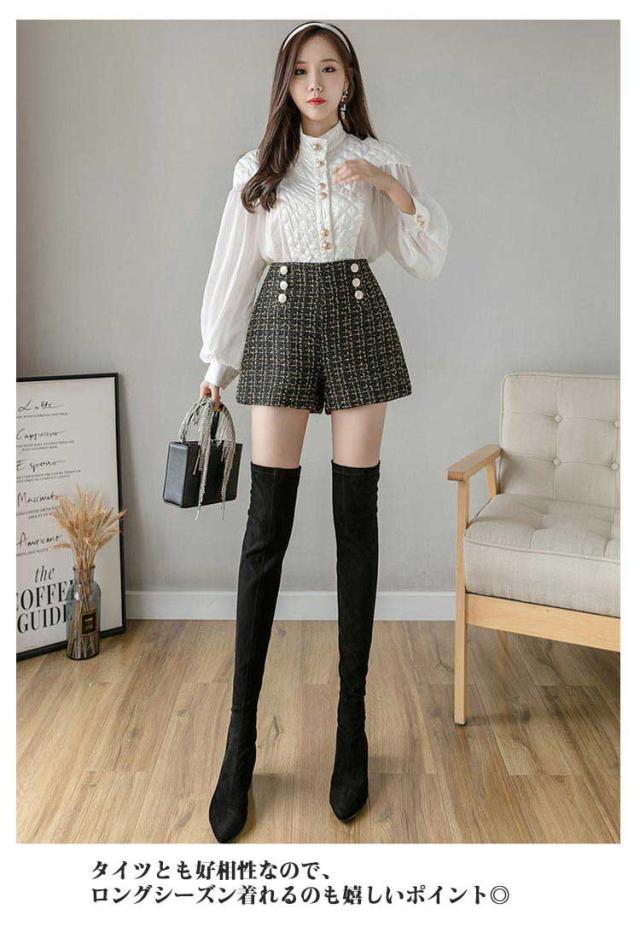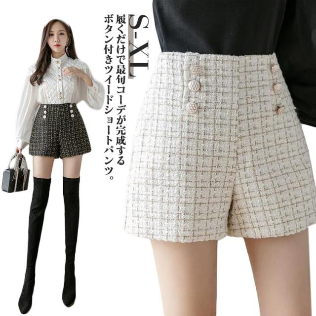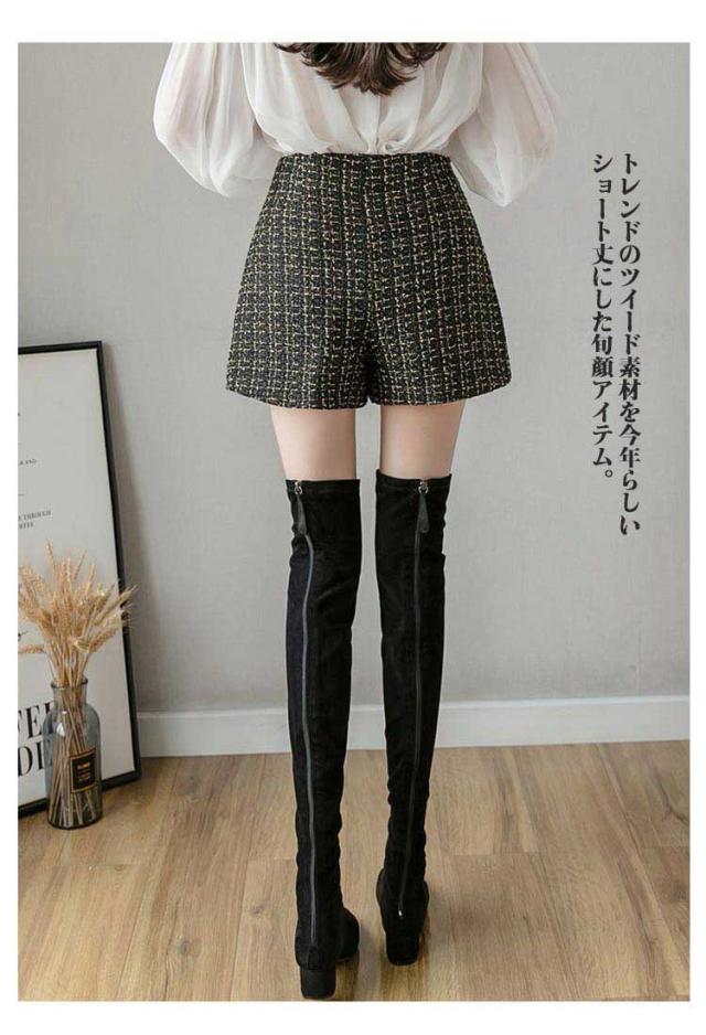 レディース ズボン Aラインパンツ ツイード風 秋冬 ショートパンツ ショート丈 20代 ハイウェスト ボトムス 春 大きいサイズ 膝上 オフィス カジュアル 通勤 30代 ツイード風 40代 大人 可愛い