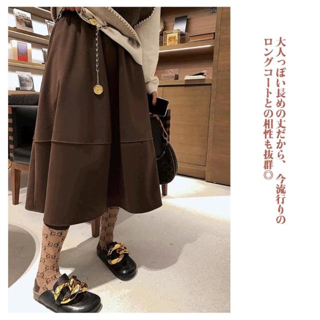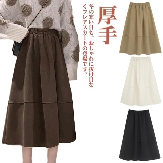 レディース ロングスカート 秋冬 スカート ハイウエスト ロングスカート 厚手 ウエストゴム 大きいサイズ フレアスカート マキシスカート 体型カバー ボトムス カジュアル 美脚 普段着 通勤