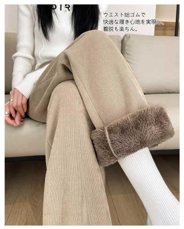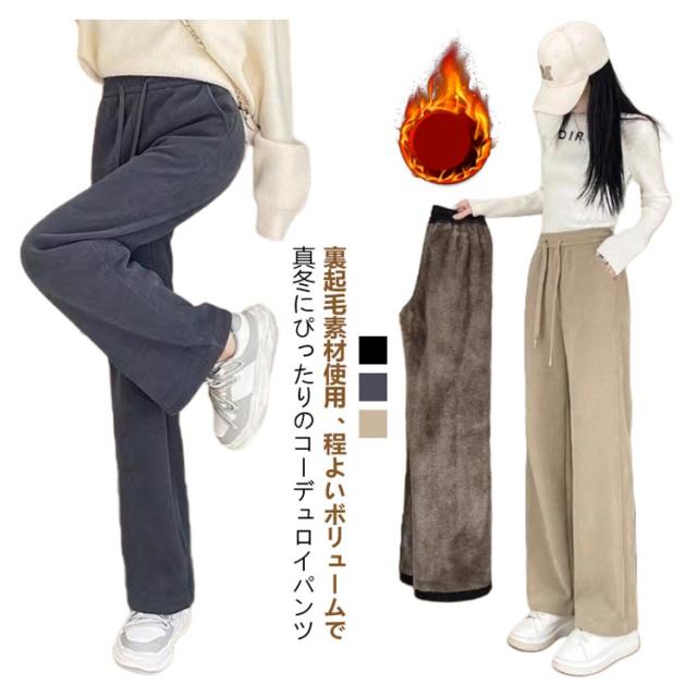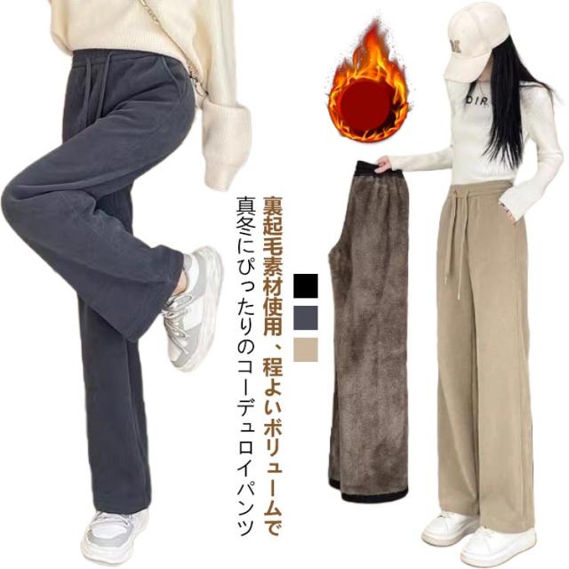 レディース ワイドパンツ コーデュロイ 裏ボア ズボン 裏起毛 冬 裏起毛 秋 暖かい 厚手 裏起毛 ポケット付き レディース ロング ワンマイルウェア 無地