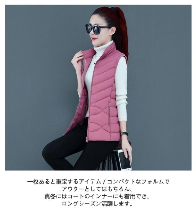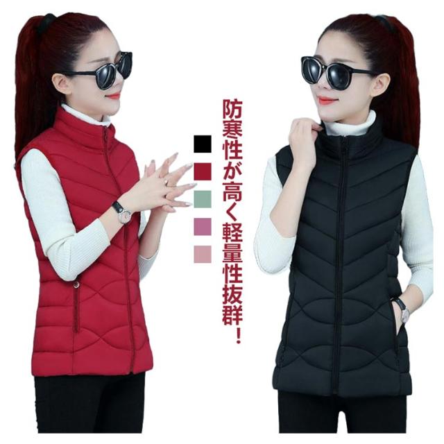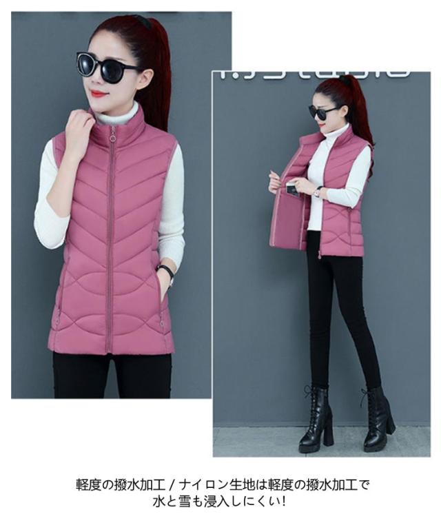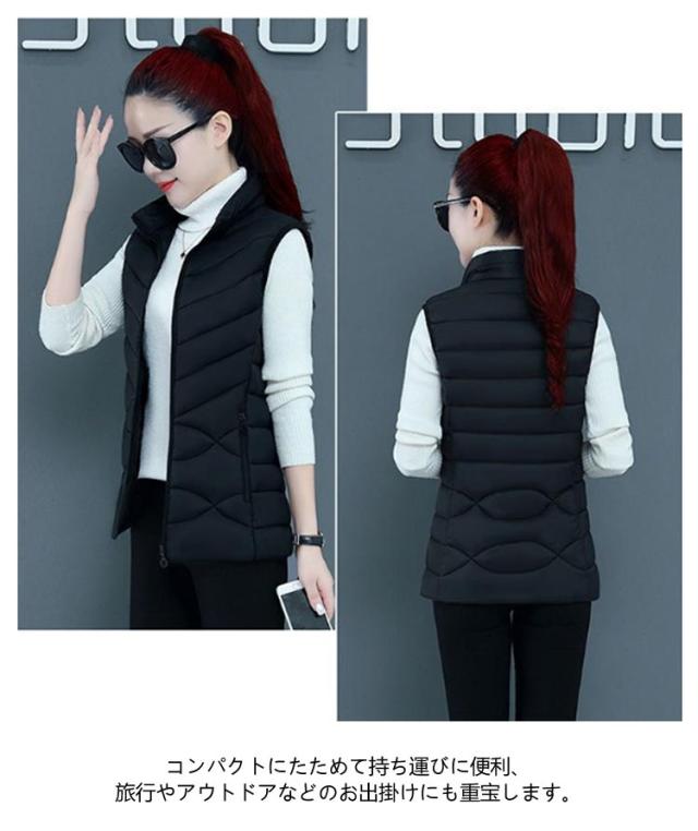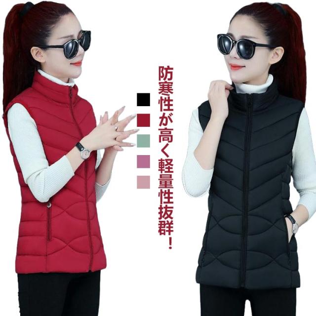 レディース ダウンベスト ノーカラー 無地 ダウンベスト インナーダウン ライトダウンベスト アウター 軽い ライトダウン あたたかい 防寒 薄い 暖か シンプル ショート丈 コンパクト 秋 冬