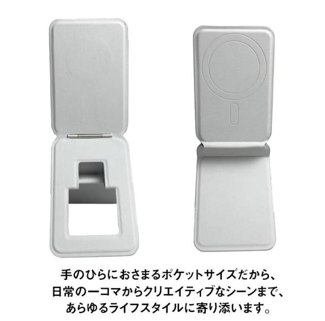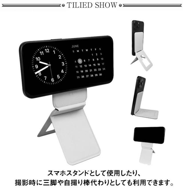 | ・マグネット式の折り畳みスマホスタンド ・高さと角度が自由自在に調整可能! ・スマホスタンドとして使用したり、撮影時に三脚や自撮り棒代わりとしても利用できます。 ・手のひらにおさまるポケットサイズだから、日常の一コマからクリエイティブなシーンまで、あらゆるライフスタイルに寄り添います。 | |